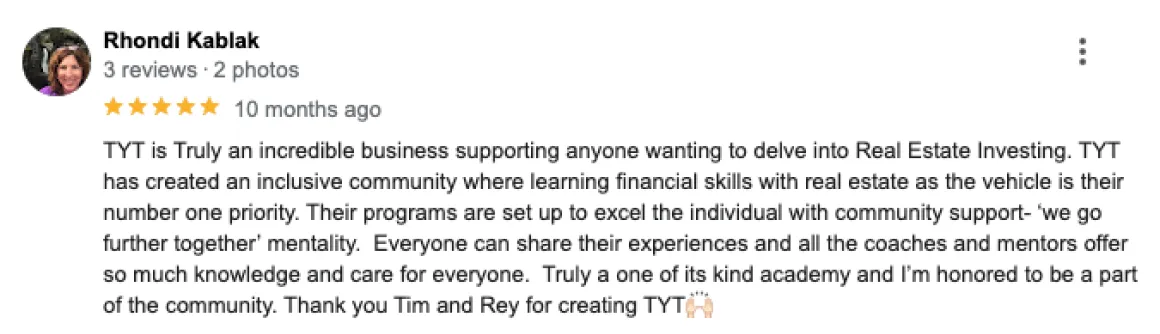 Feel like you're missing the insider knowledge to make big moves in real estate? TYT is your ultimate mentorship in mastering the market. We don’t just teach you the ropes—we empower you to structure deals like a pro, secure superior financing options, and scale a single investment into a flourishing portfolio of five or more properties.
