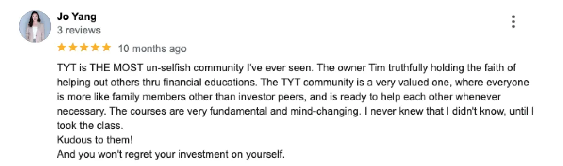 • Unlike other so-called ‘investment gurus’, Tim offers real-world applications that have been proven time and again, ensuring that his students are equipped with knowledge that leads to real financial growth and independence.